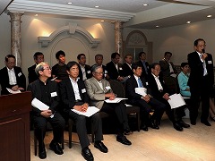 <乾杯のご発声> 宮地充子氏(大学大学院工学研究科教授) 山敷庸亮氏(京都大学大学院総合生存学館専攻長/教授)